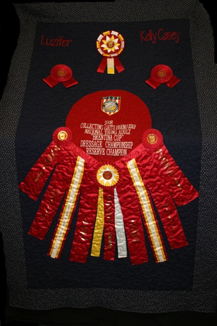 I am so excited that I found you at the Olympic Trials this year! Luz and Kelly had their biggest win ever getting reserve in the Brentina Cup for dressage. Using the cooler that didnt fit him in the quilt works beautifully, I cant wait to display this quilt at every show we go to! Thank you!