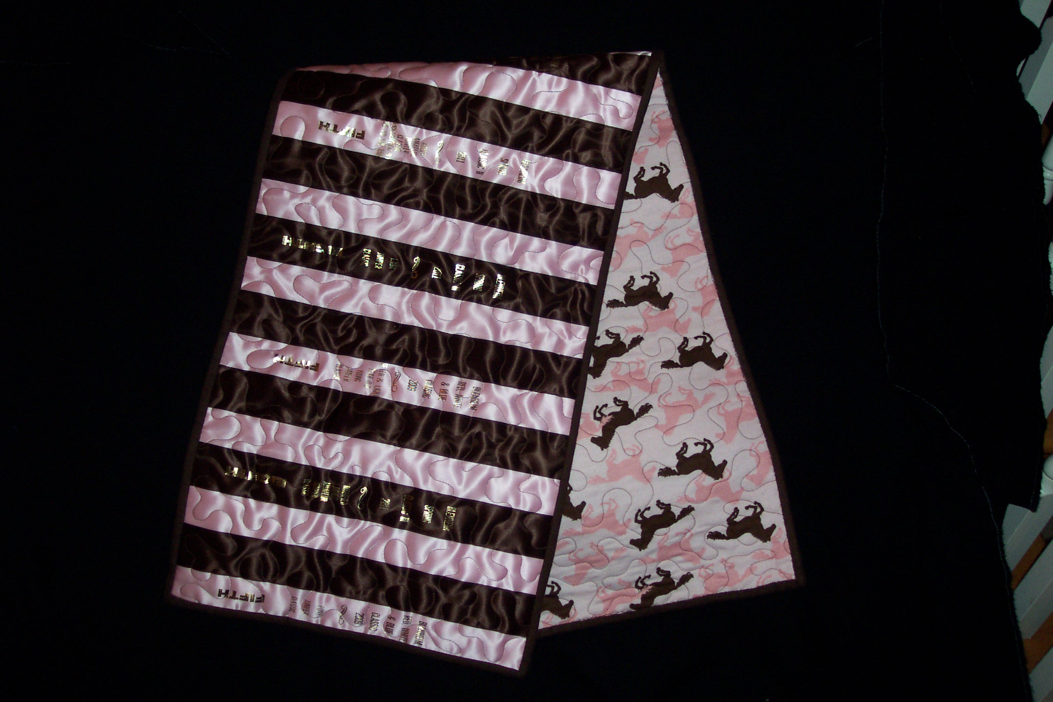 Pink and brown with flannel horse fabric for the backing is perfect for a dresser or bedroom table.