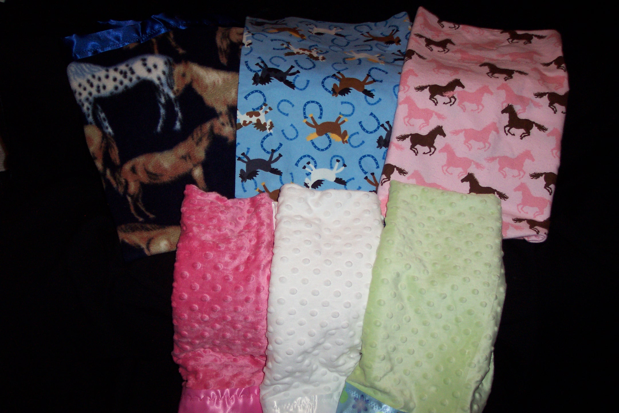 Baby blankets in all colors and themes. Here are just a few 36" x 45" $25.