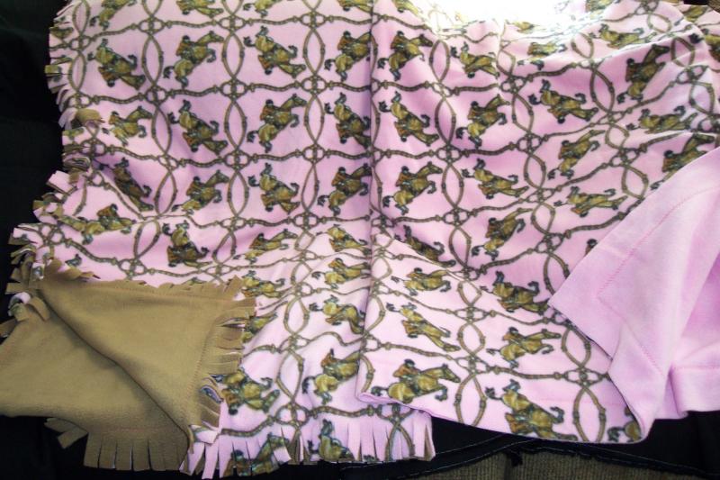 Pink hunter fleece throw, tan or pink back. 54" x 60". $45 each