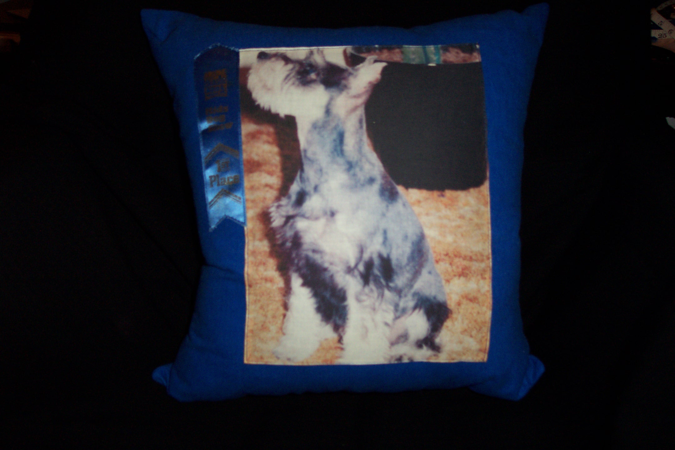 Tragically after winning her first show, this beautiful dog was killed by a car! Her owner wanted to remember her with this pillow.