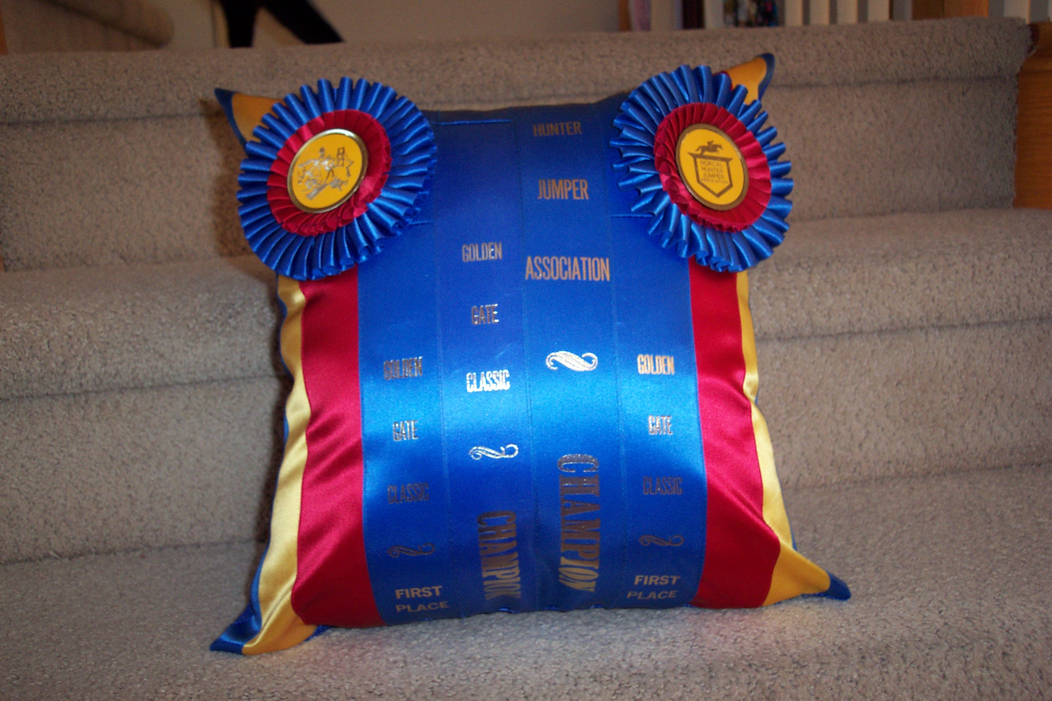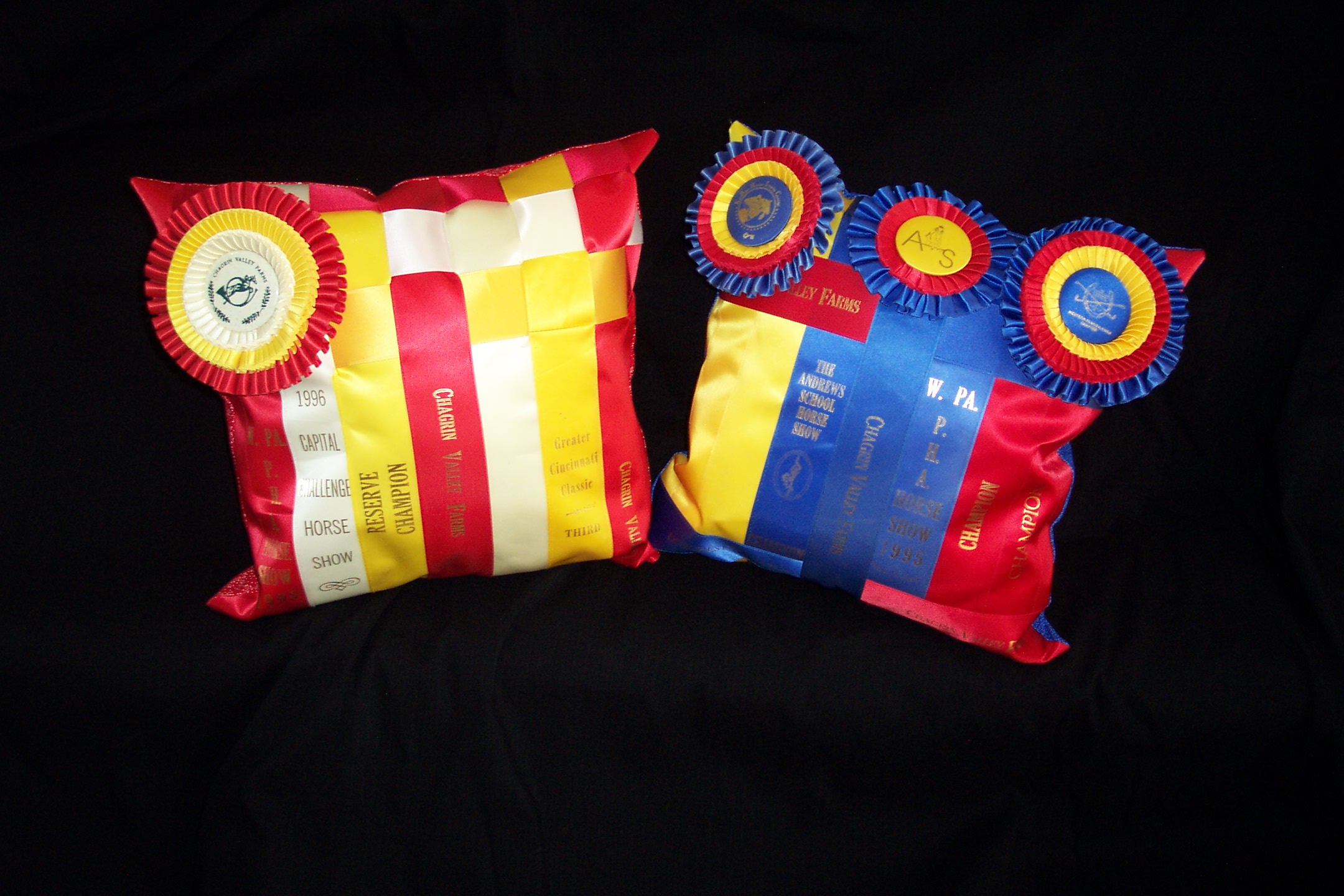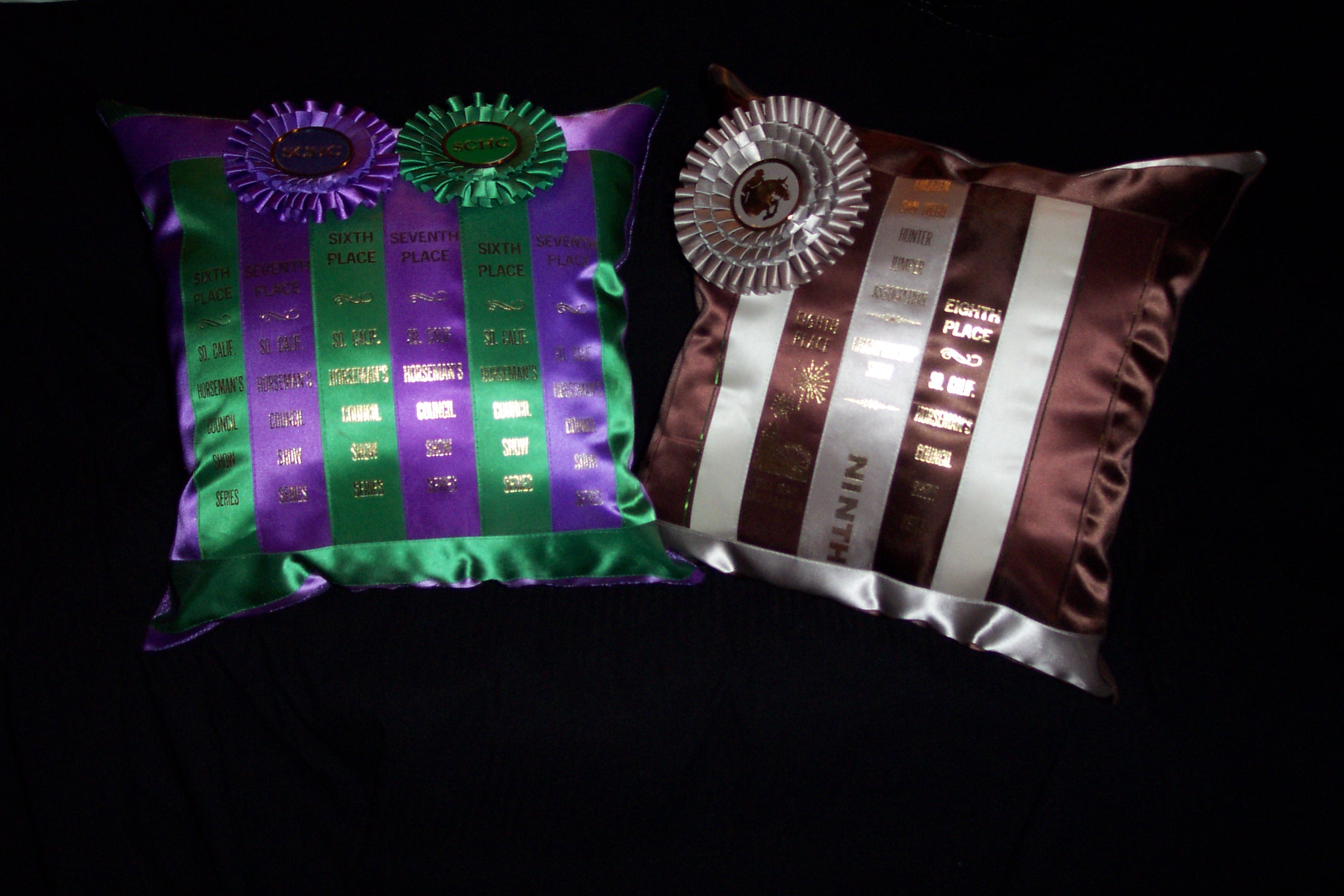 Debbie's daughter Cassandra ordered these pillows as a gift for her mom and embroidered the names of the special horses who won the ribbons.