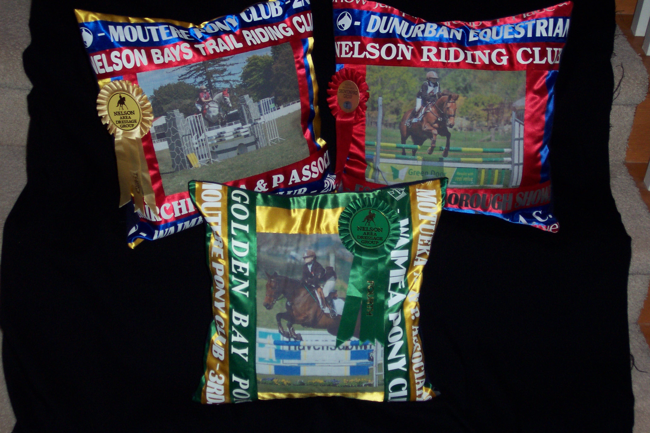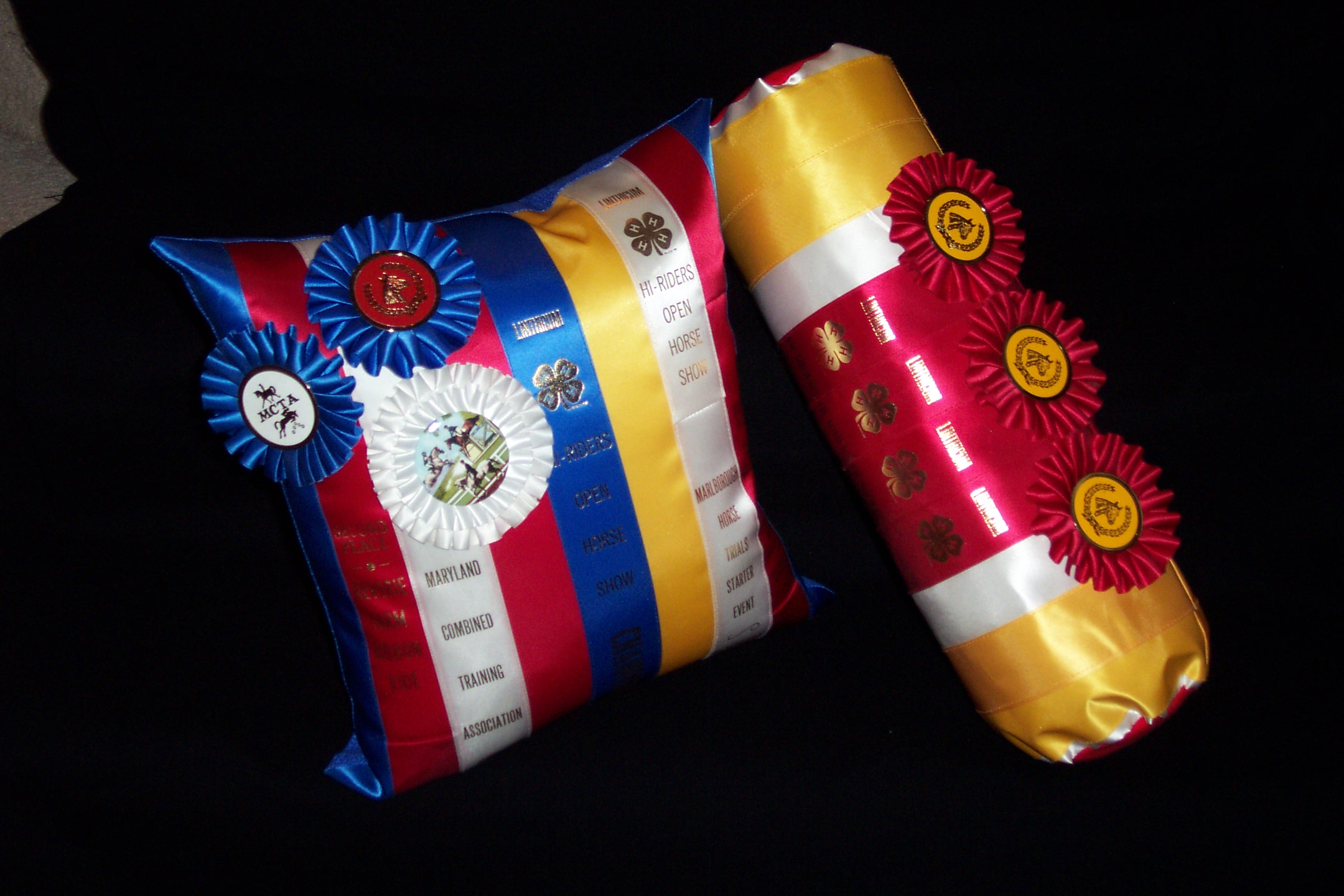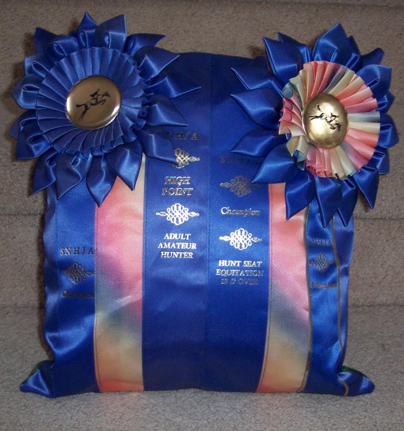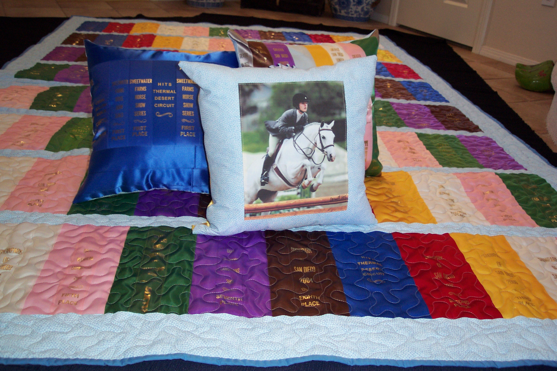 Debbie's daughter Cassandra ordered these pillows as a gift for her mom and embroidered the names of the special horses who won the ribbons.