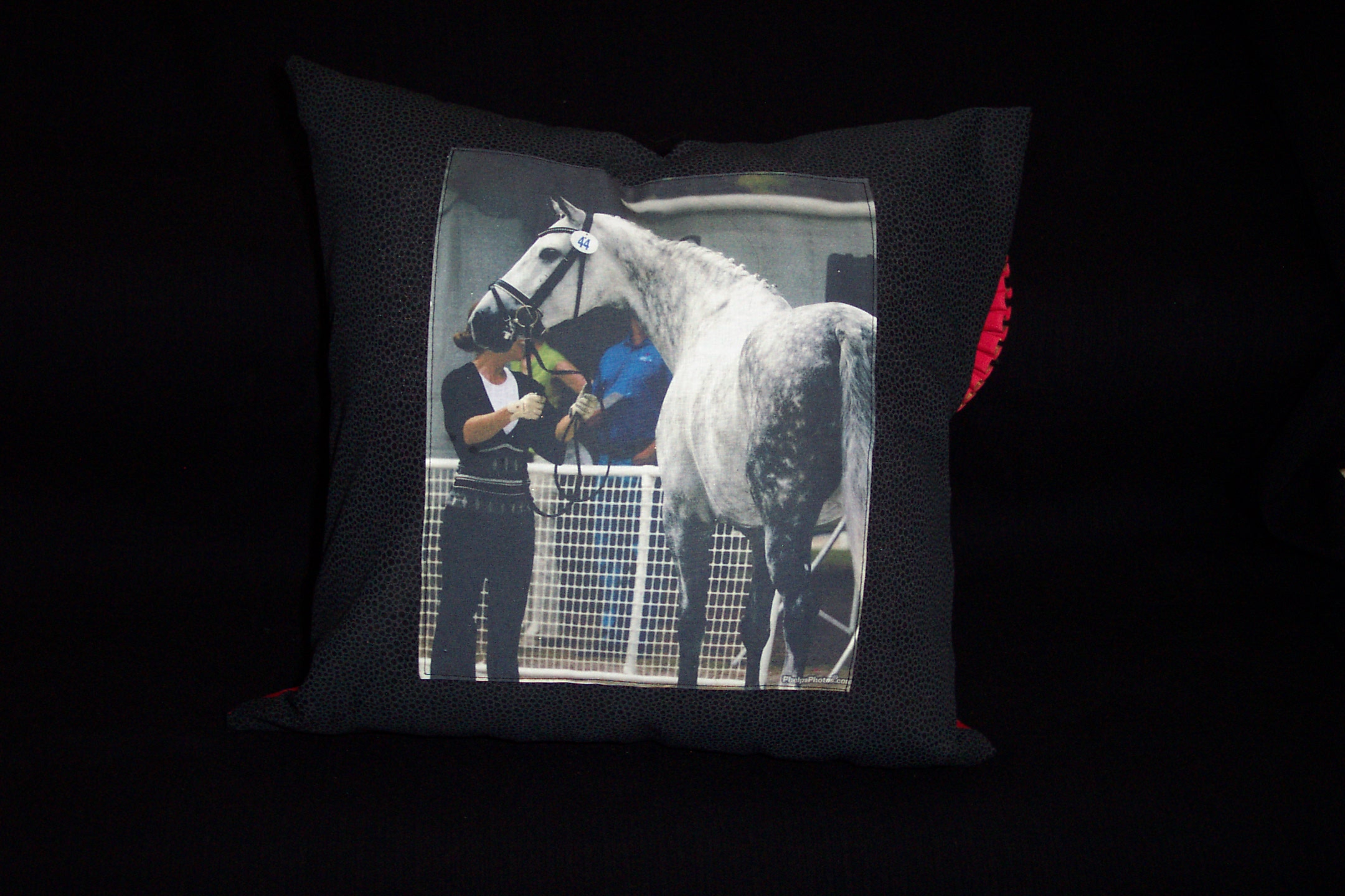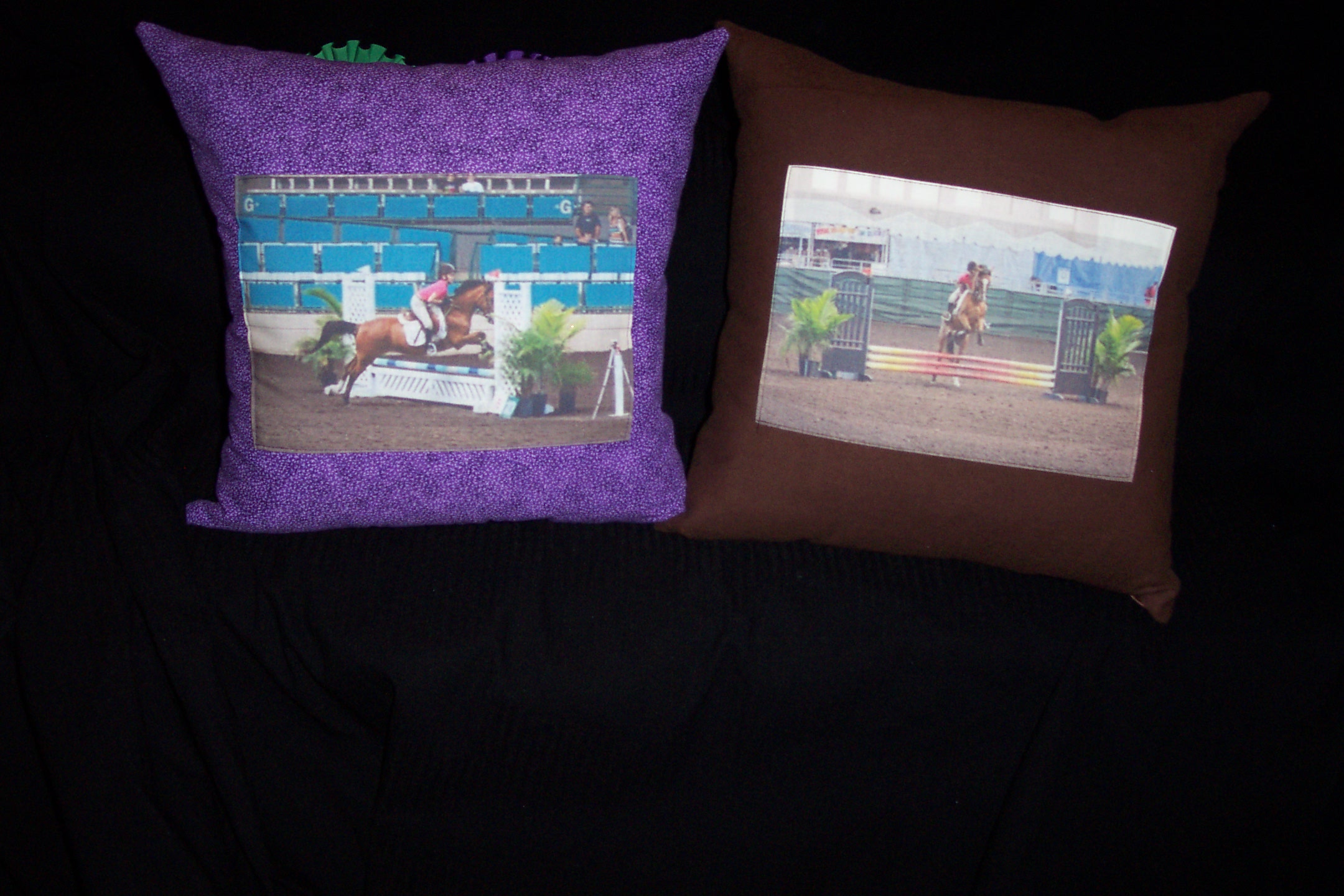 Rebecca won a gift certificate for a pillow at the Sycamore Dressage Show and then added this fabulous photo of her horse to the back of the pillow!
